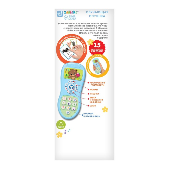 «Умный пульт» поможет ребёнку развить кругозор и мышление. Светящееся устройство привлекает внимание и превращает процесс обучения в весёлую игру.