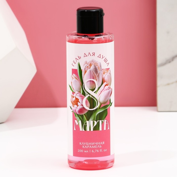 Гель для душа «С 8 Марта!», 200 мл, аромат клубничной карамели, ЧИСТОЕ СЧАСТЬЕ