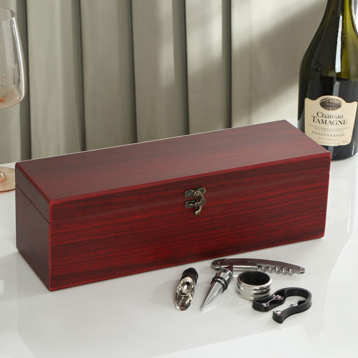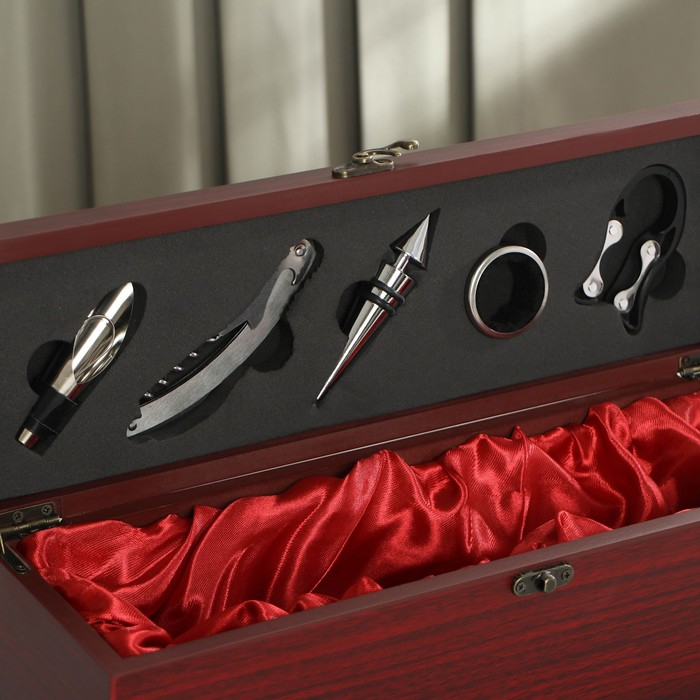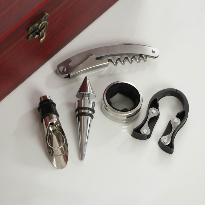 Набор для вина Доляна, 6 предметов: кейс для бутылки, каплеуловитель, штопор, пробка, кольцо, нож для фольги