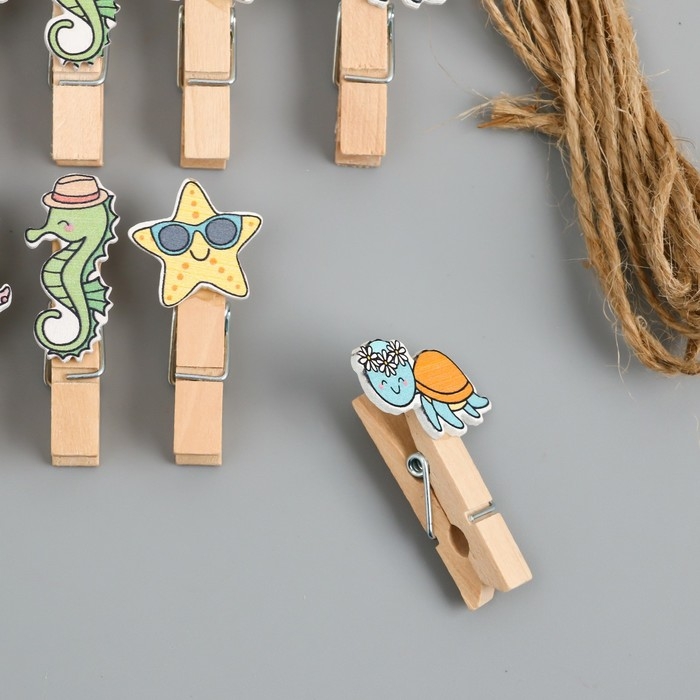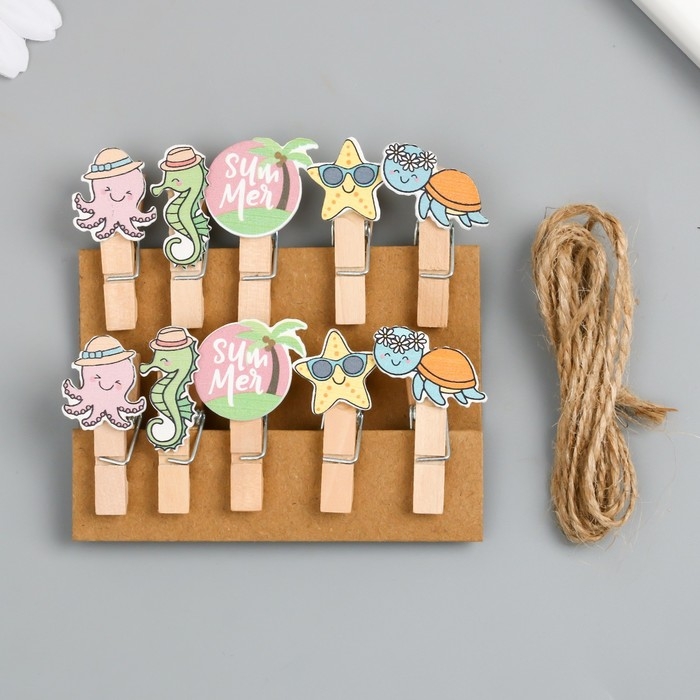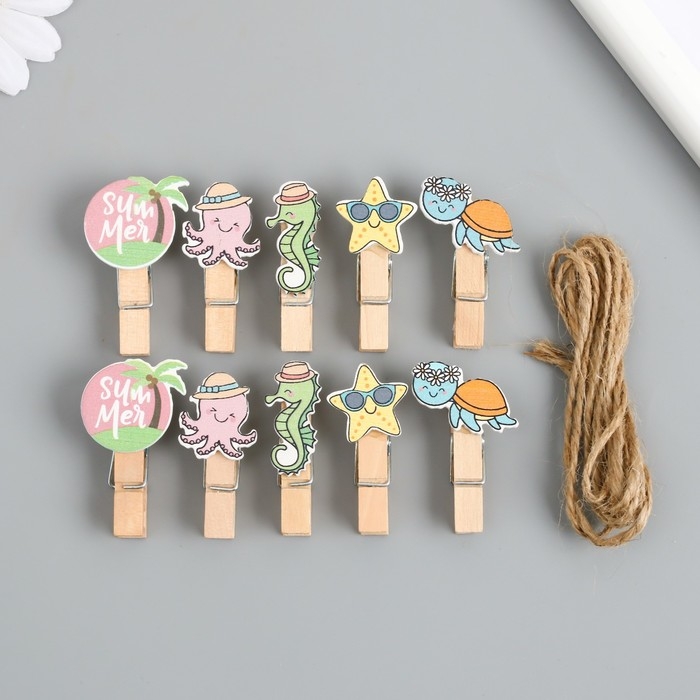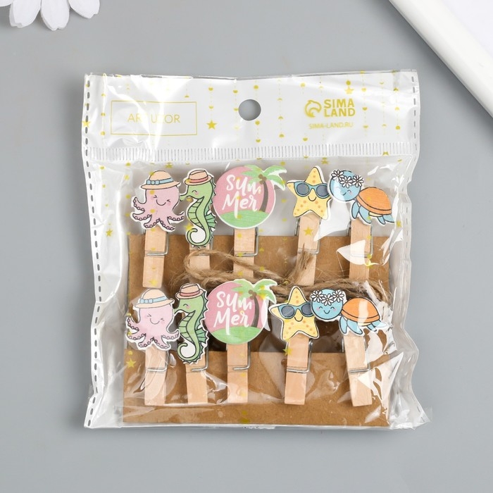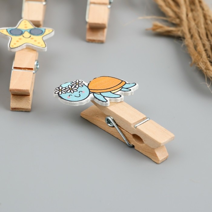 Декор для творчества дерево "Прищепка. Морские животные в отпуске" набор 10 шт 4х2х1,2 см