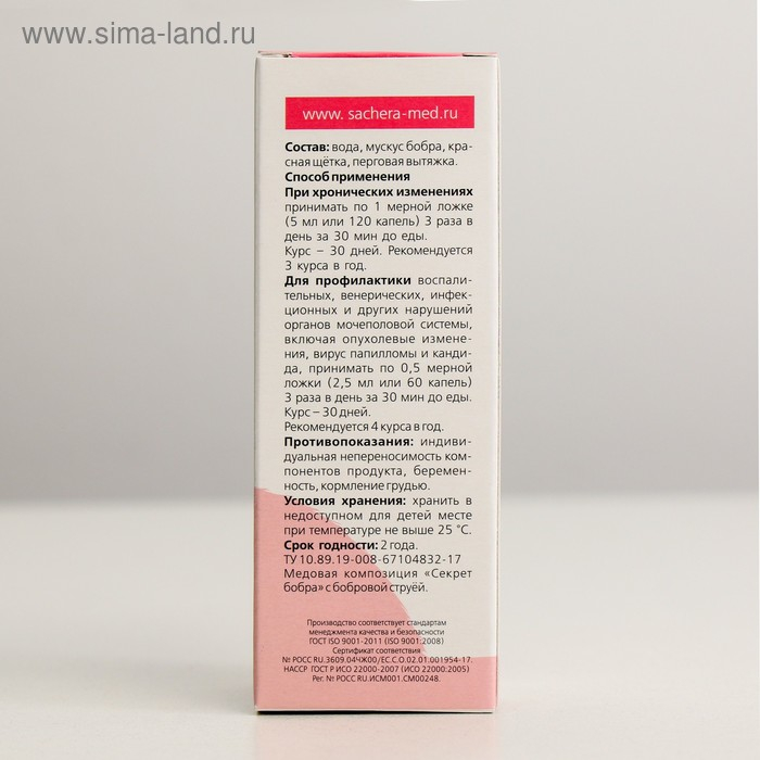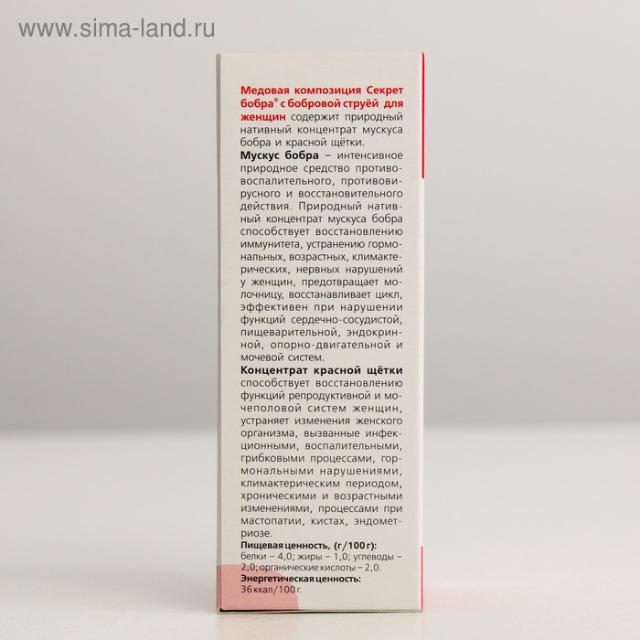 Состав: вода, мускус бобра, красная щётка, перговая вытяжка.