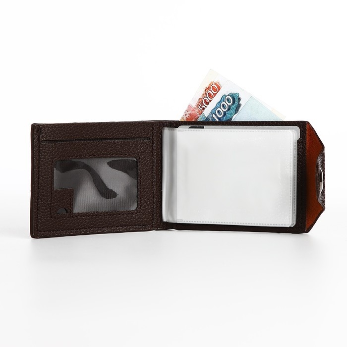 Портмоне мужское на магните, отдел для купюр, карт, монет, цвет коричневый