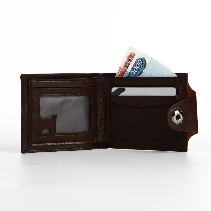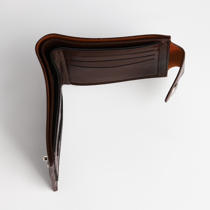 Портмоне мужское на магните, отдел для купюр, карт, монет, цвет коричневый