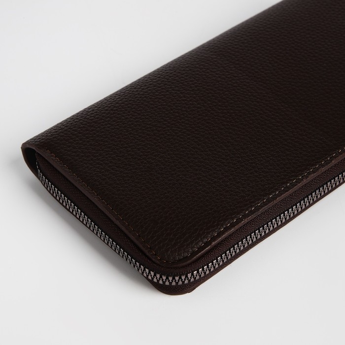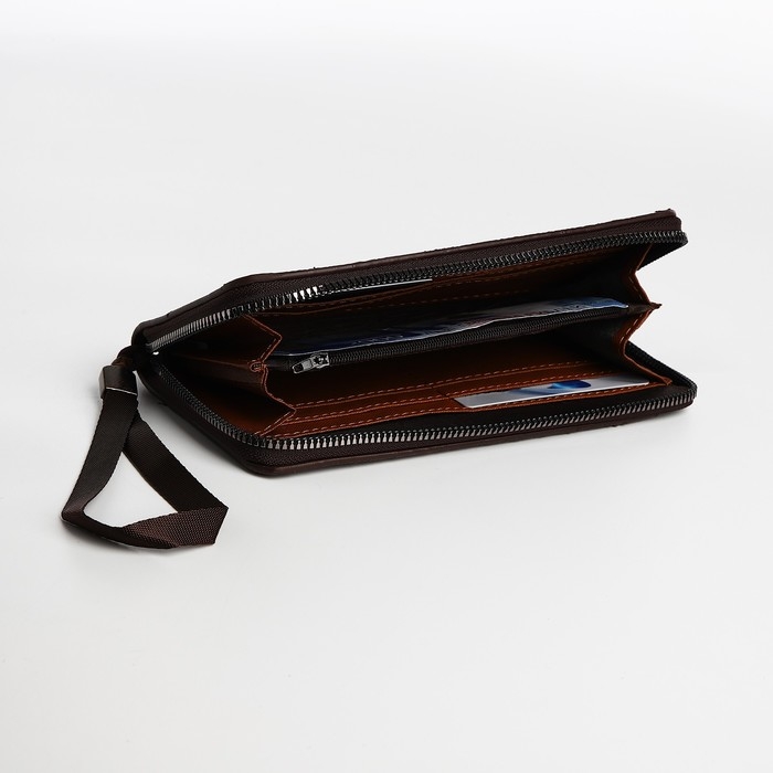 Портмоне мужское на молнии, отдел для купюр, для карт, для монет, цвет коричневый