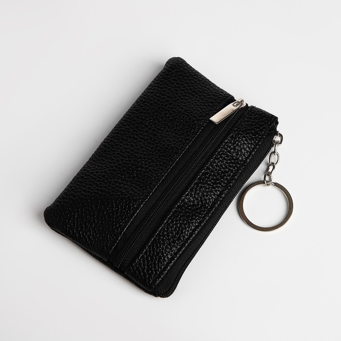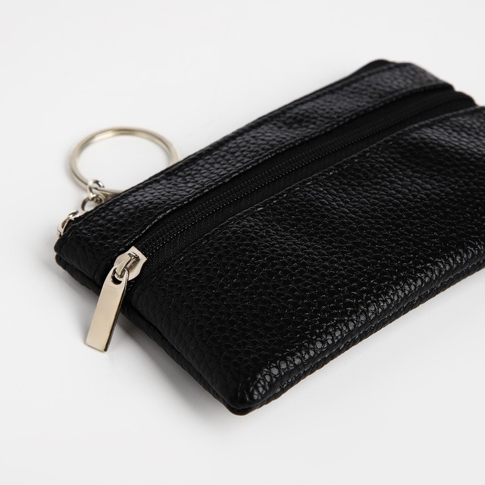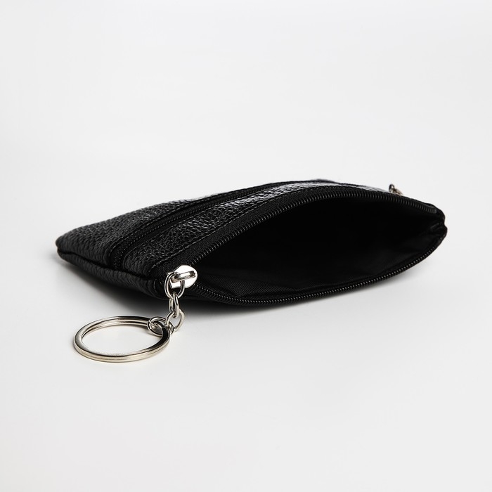 Ключница - кошелёк на молнии, длина 12 см, кольцо, цвет чёрный