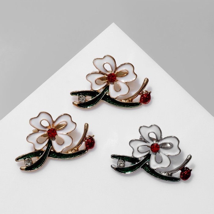 Брошь «Цветок» с двумя листьями, цвет МИКС (неделимая фасовка 12 шт., цена за шт.)