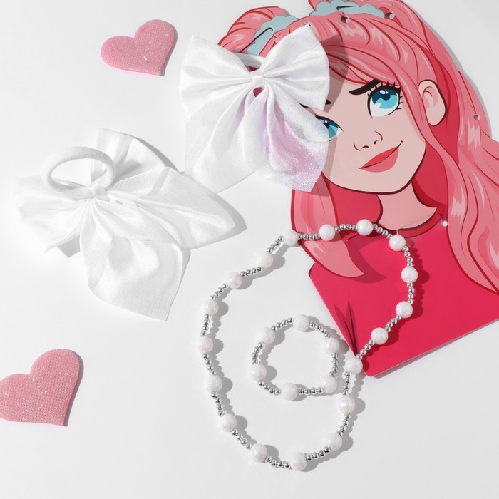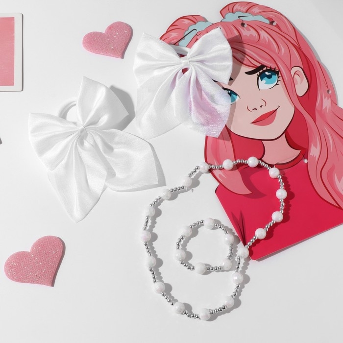 Набор «Выбражулька» 4 предмета: 2 резинки, бусы, браслет цвет белый