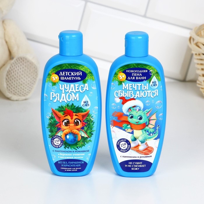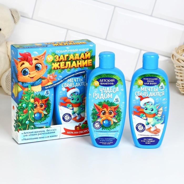 Подарочный набор косметики детский «Загадай желание», пена для ванны и шампунь для волос, 2 х 250 мл, ЧИСТОЕ СЧАСТЬЕ