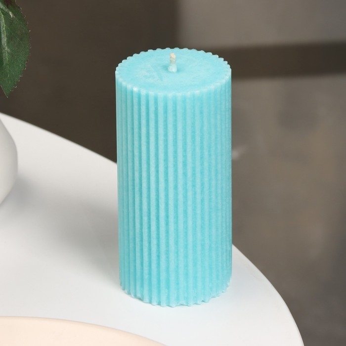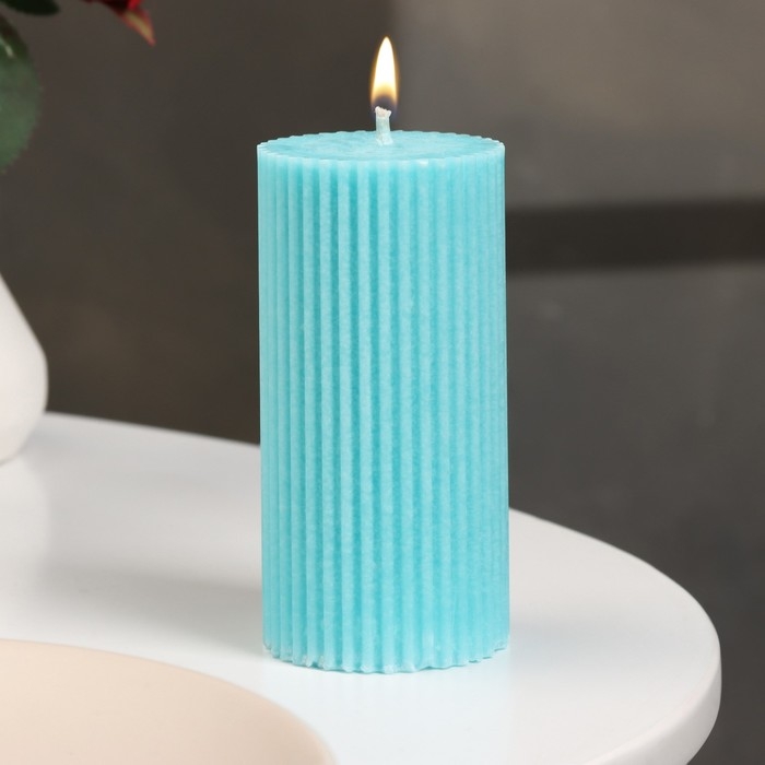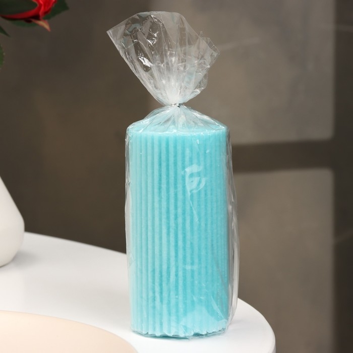 Свеча-цилиндр с гранями, 5х10 см, бирюзовая, 6 ч