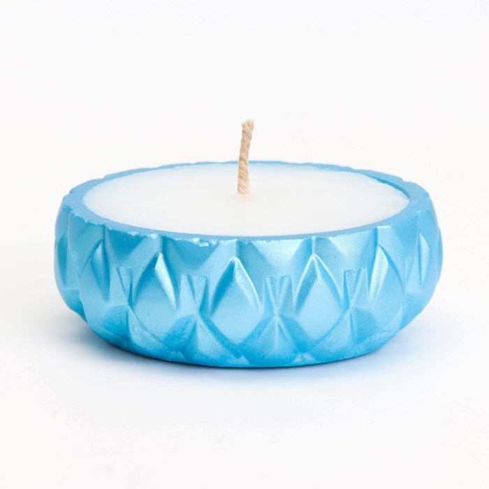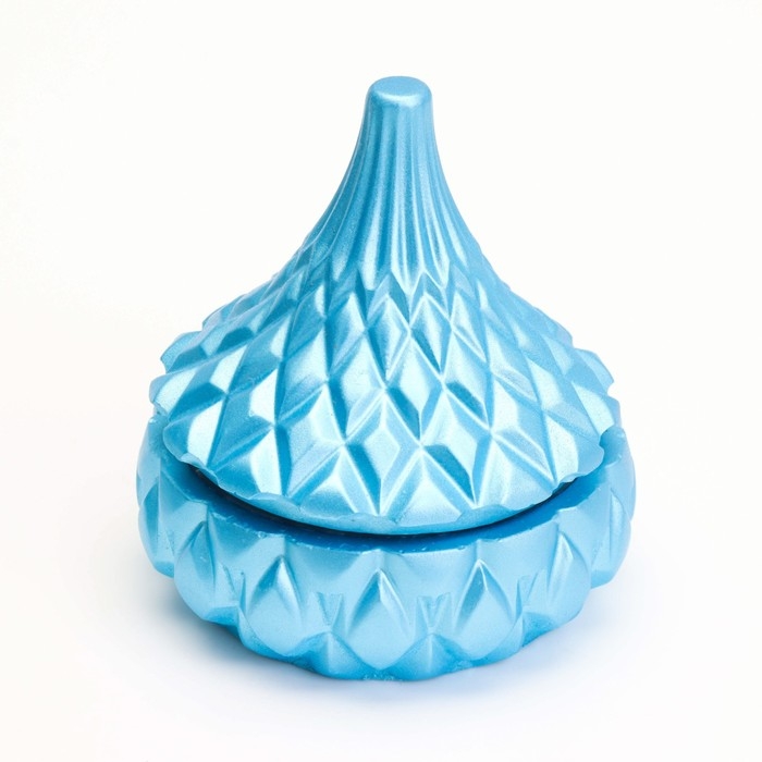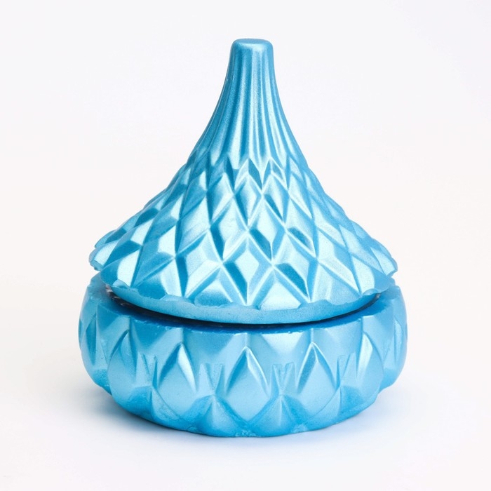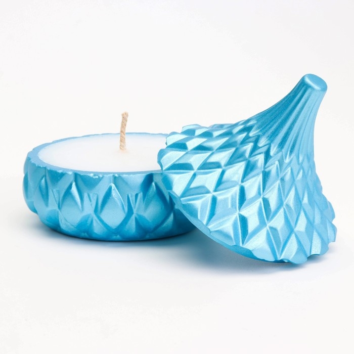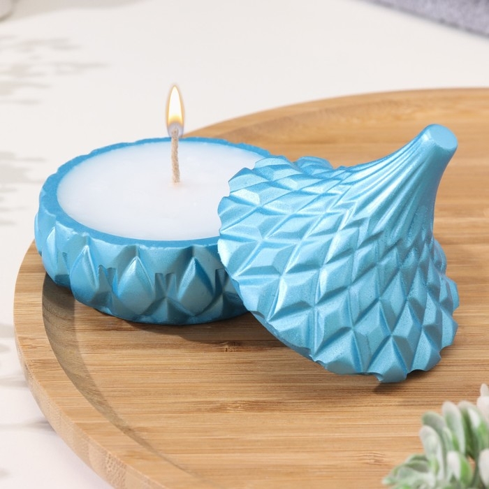 Свеча «Купол» в подсвечнике с ромбовидными гранями из гипса с крышкой, 8,5х8,5см, голубой