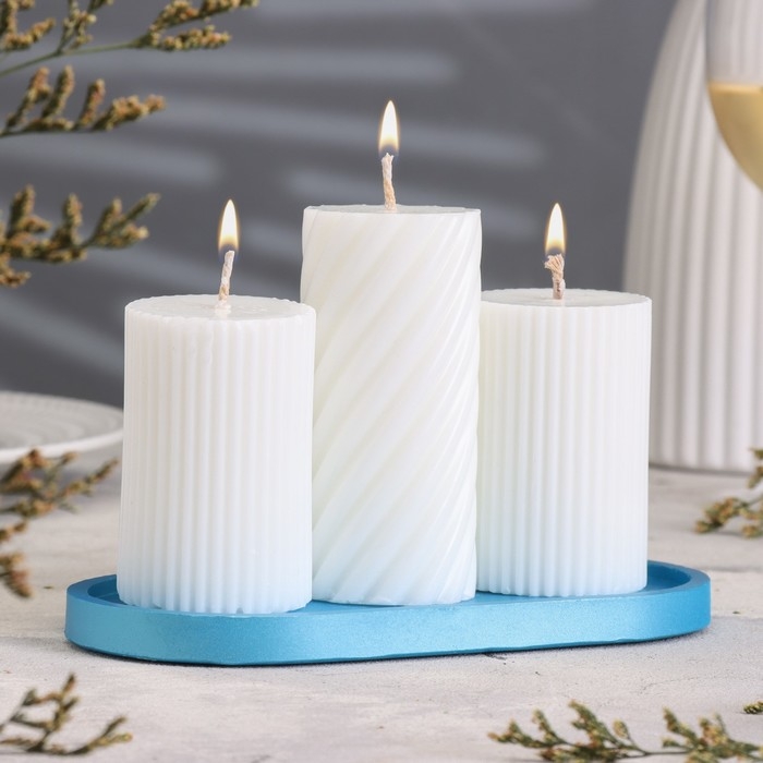 Подсвечник овальный из гипса,17,5х9х1,5см,голубой