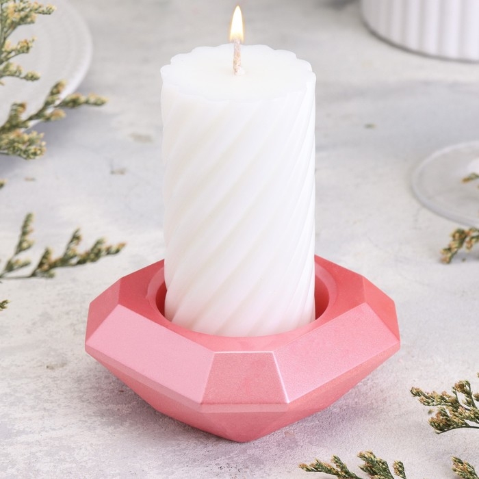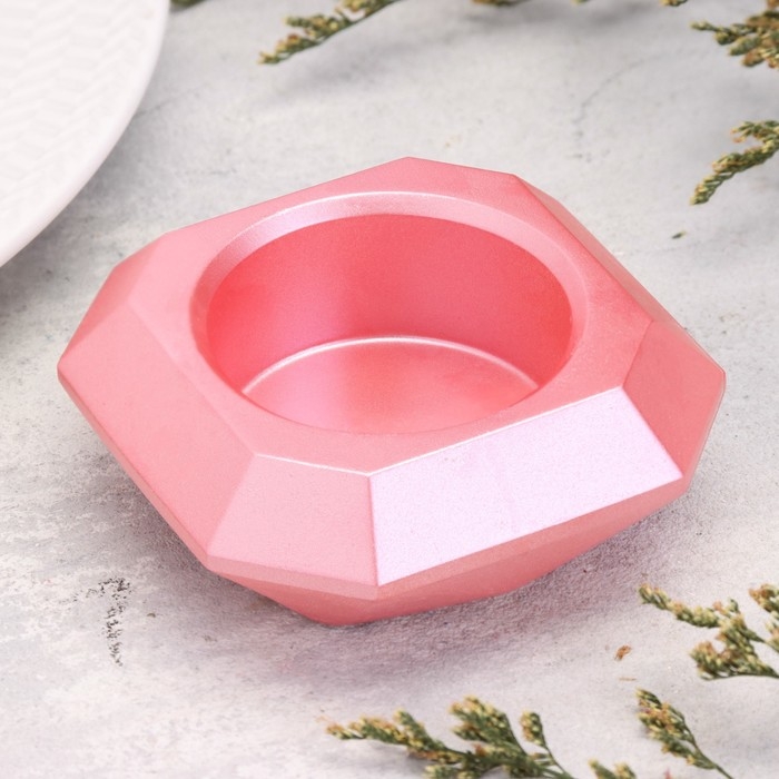 Подсвечник "Квадрат" из гипса со скошенными углами малый,9х3,5см,розовый