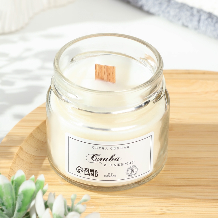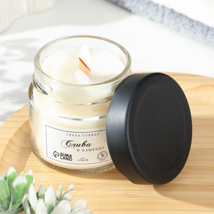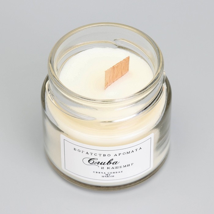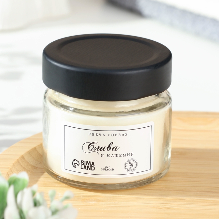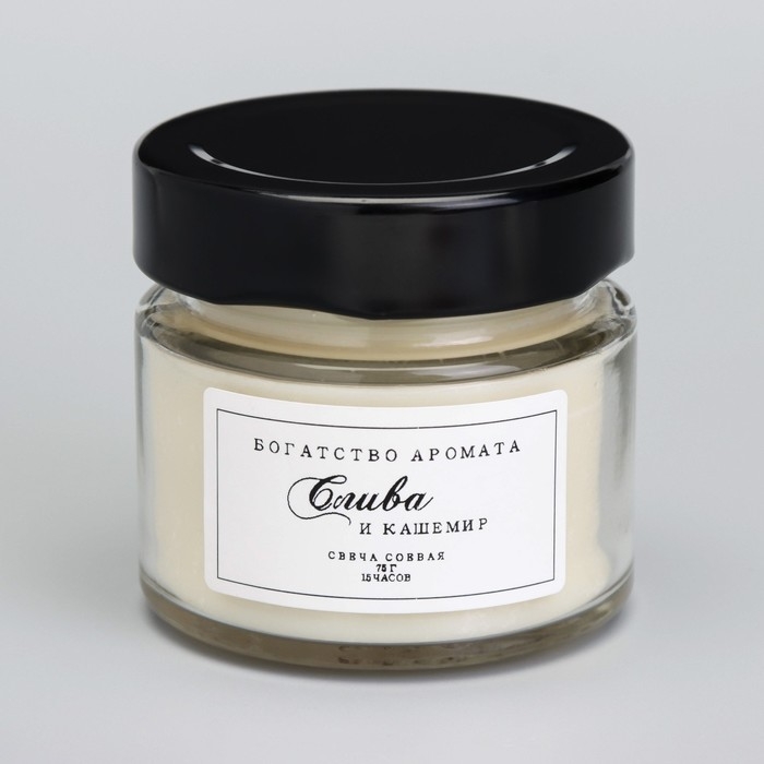 Свеча ароматическая из соевого воска в банке, 75 г, слива и кашемир