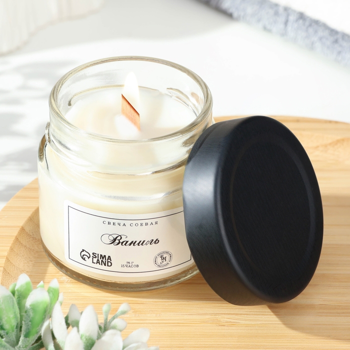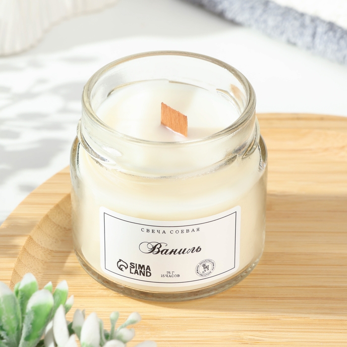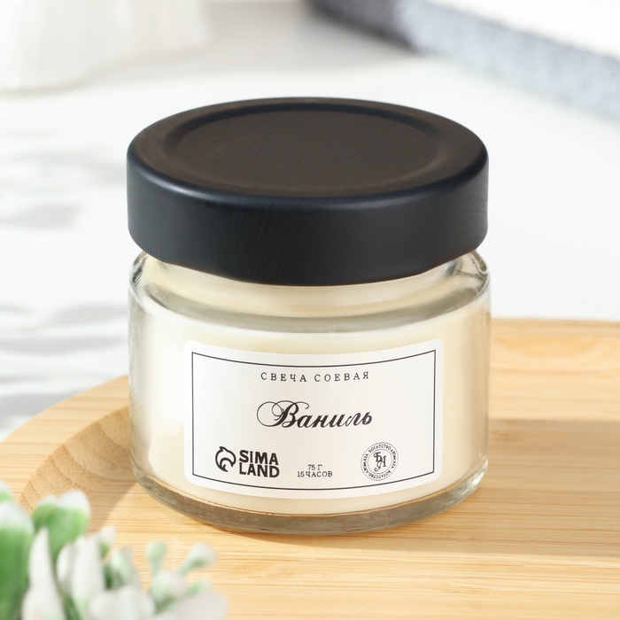 Свеча ароматическая из соевого воска в банке, 75 г, ваниль