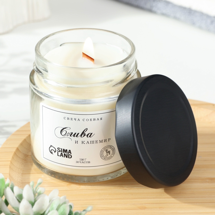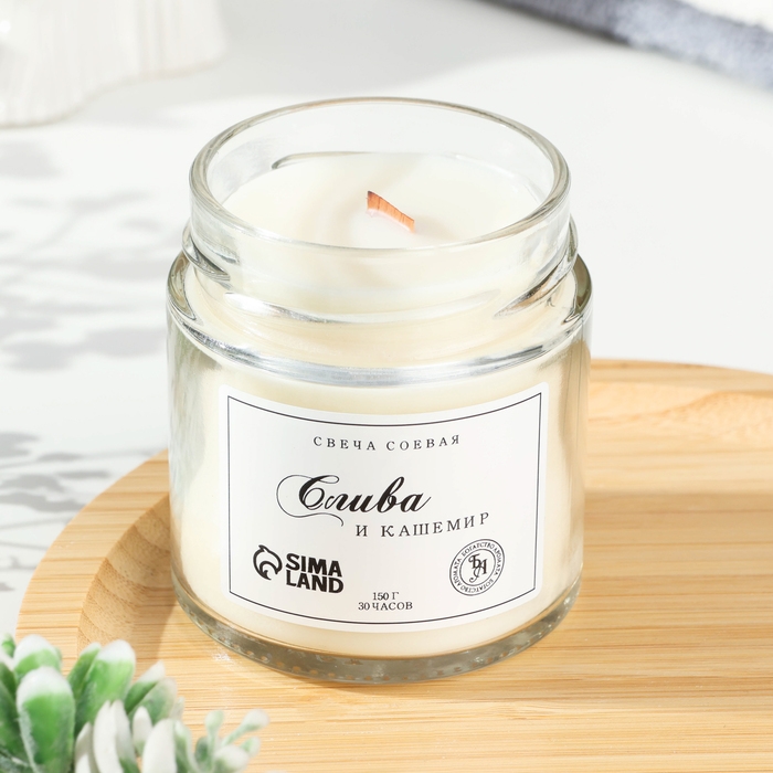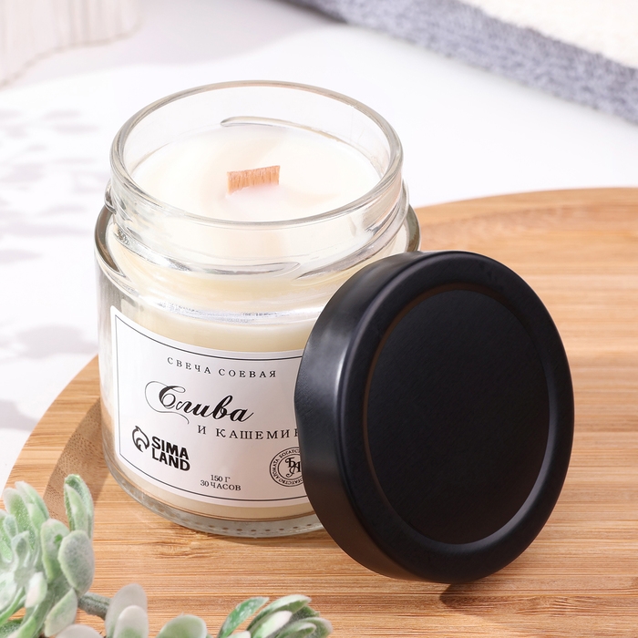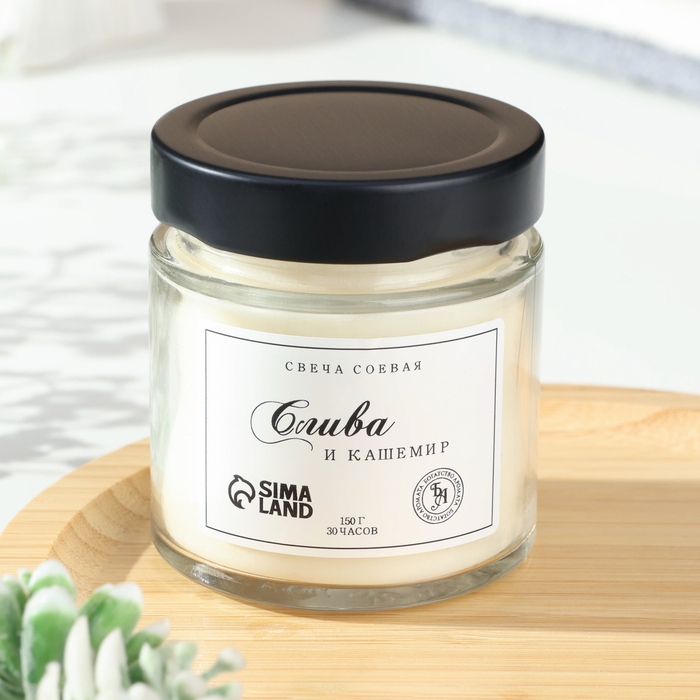 Свеча ароматическая из соевого воска в банке, 150 г, слива и кашемир