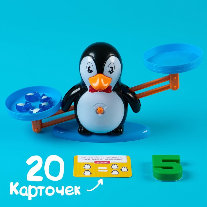 - Изучайте принцип равновесия. Попросите малыша положить на одну чашу цифру 3. Расскажите, что на вторую нужно положить цифры 1 и 2: тогда будет соблюдён принцип равновесия. Потренируйте мышление на примерах с пингвинчиками.