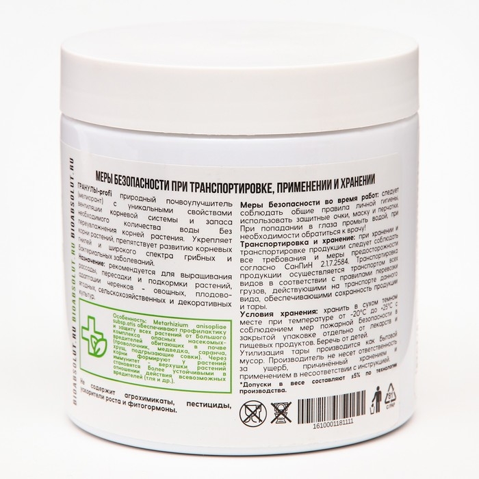 Класс опасности: IV (не опасен). Абсолютно безопасен для человека, животных и окружающей среды. Не является пестицидом или агрохимикатом. Не подлежит обязательной сертификации, декларированию или государственной регистрации.