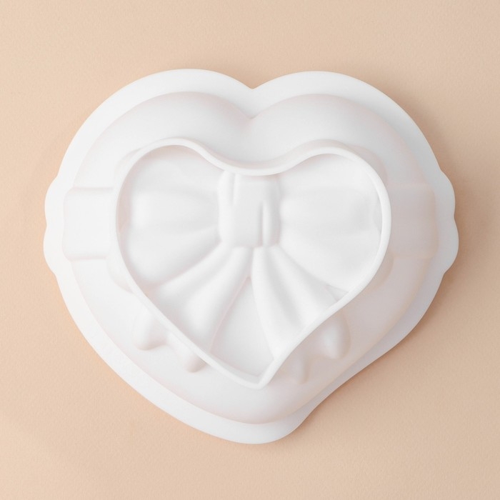Форма для выпечки и муссовых десертов KONFINETTA «Сердце с бантом», 19×17×6,5 см, цвет белый