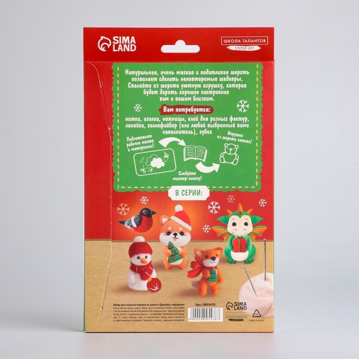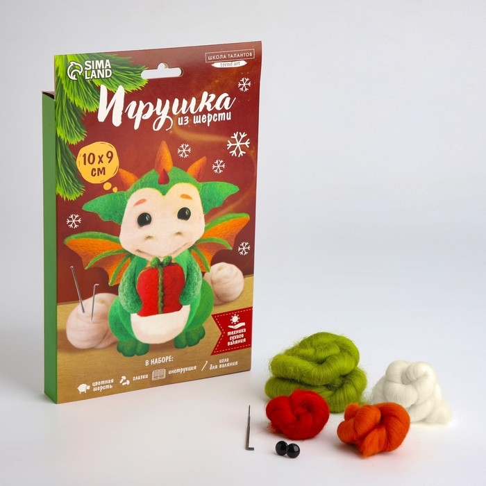 Валяние из шерсти на новый год. Игрушка своими руками «Дракоша с подарком», новогодний набор для творчества