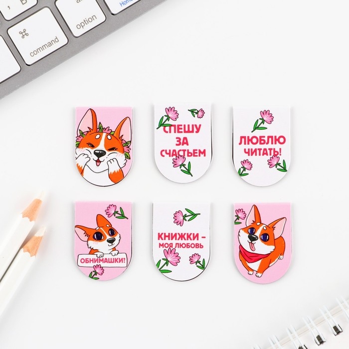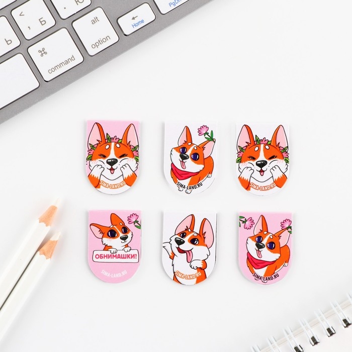 Закладки магнитные, 6 шт «Корги»