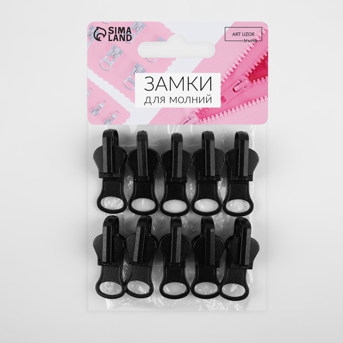 Бегунок автоматический реверсивный для молнии «Трактор», №8, 10 шт, цвет чёрный