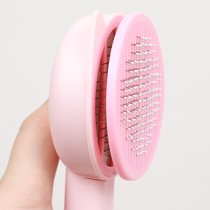 Пуходёрка пластиковая "Кошка" с функцией самоочистки, 8,5 х 20 см, розовая