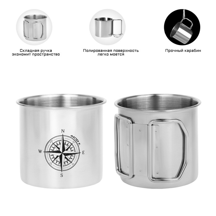 Термокружка, 250 мл, Горы "Мастер К. Компас", складная ручка, 7 х 7.5 см