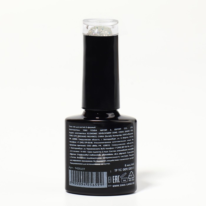 Гель лак для ногтей, с блёстками, 3-х фазный, 8 мл, LED/UV, голубой