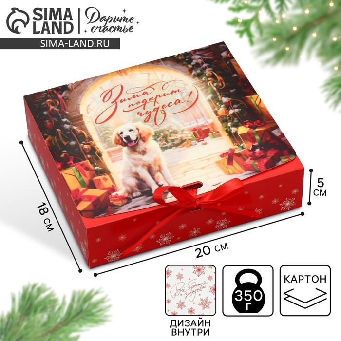 Коробка подарочная новогодняя складная двухсторонняя «Зима подарит чудеса», 20 х 18 х 5 см, Новый год