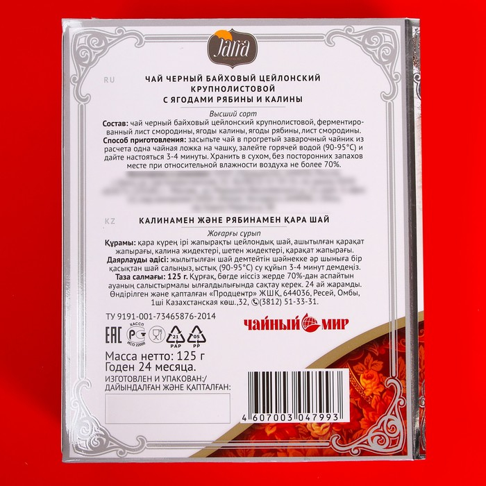 Чай чёрный "Русская зима" с ягодами рябины и калины, 125 г