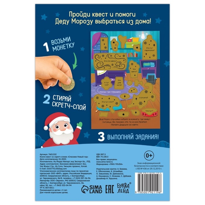 Книга-квест со скретч-слоем «Спасаем Новый год», 12 стр.