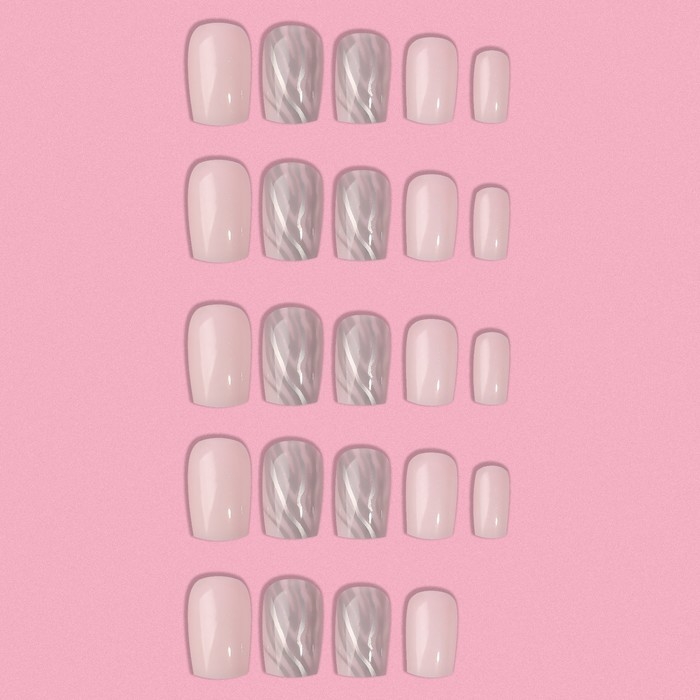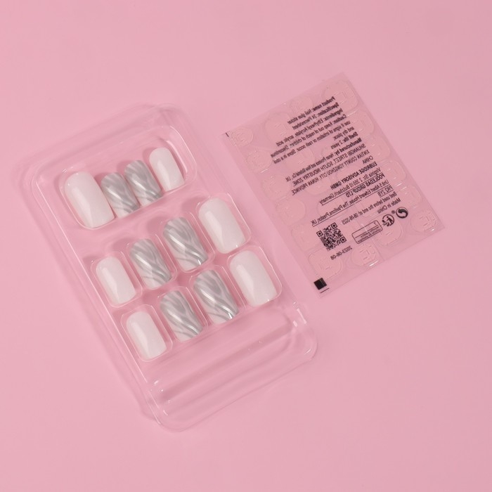 Накладные ногти «Zebra», 24 шт, с клеевыми пластинами, форма мягкий квадрат, цвет белый/серебристый