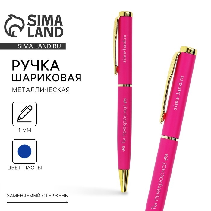 Ручка металл «Ты прекрасна!», синяя паста 1.0 мм