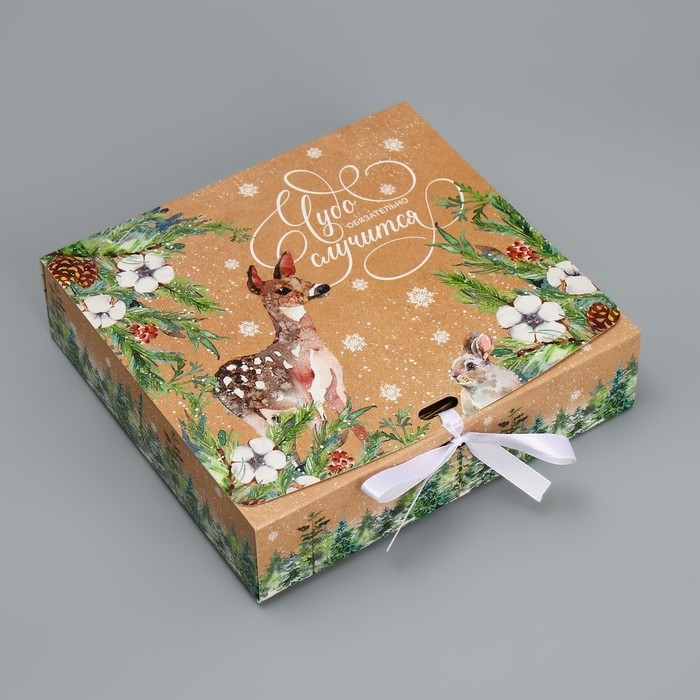 Коробка подарочная новогодняя складная двухсторонняя «Чудо обязательно случится», 20 х 18 х 5 см, Новый год