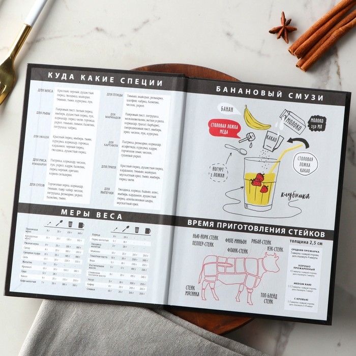 Ежедневник для записи рецептов - Отличный помощник на кухне, он всегда будет под рукой, в отличие от любых электронных аналогов. Записи позволят не забыть про удачный рецепт, который снова захотите повторить. Для удобства использования, вы можете отмечать сложность, время приготовления, где готовится и количество порций, для каждого рецепта, а так же записывать весь процесс приготовления. Благодаря твердой обложке он прослужит долгие годы. А универсальный формат, не займет много места на вашей кухне.