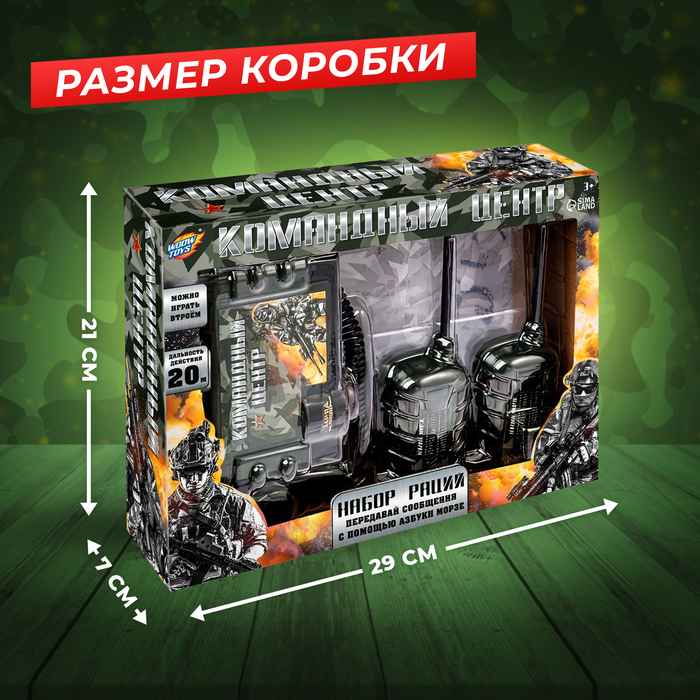 Набор раций «Командный центр» — это отличная возможность для детей погрузиться в захватывающий мир приключений и командных игр. В комплект входят три переговорных устройства, которые работают от батареек и позволяют вести связь на расстоянии. Дети могут использовать рации для ролевых игр, будь то командование отрядом или выполнение секретной миссии.