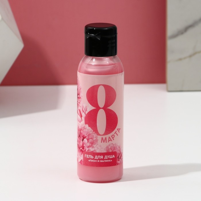 Гель для душа «С 8 Марта!», 100 мл, аромат пиона и малины, ЧИСТОЕ СЧАСТЬЕ
