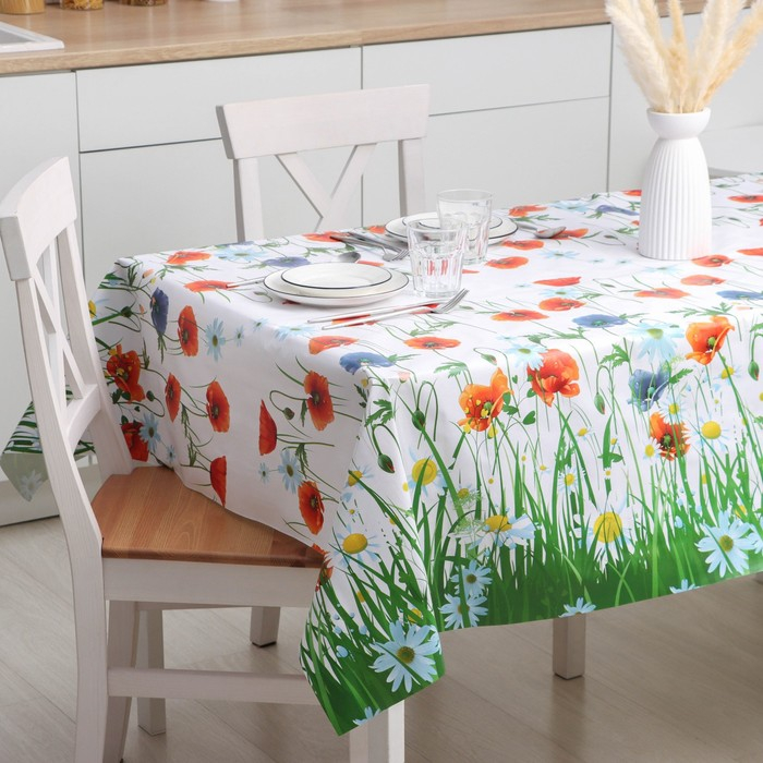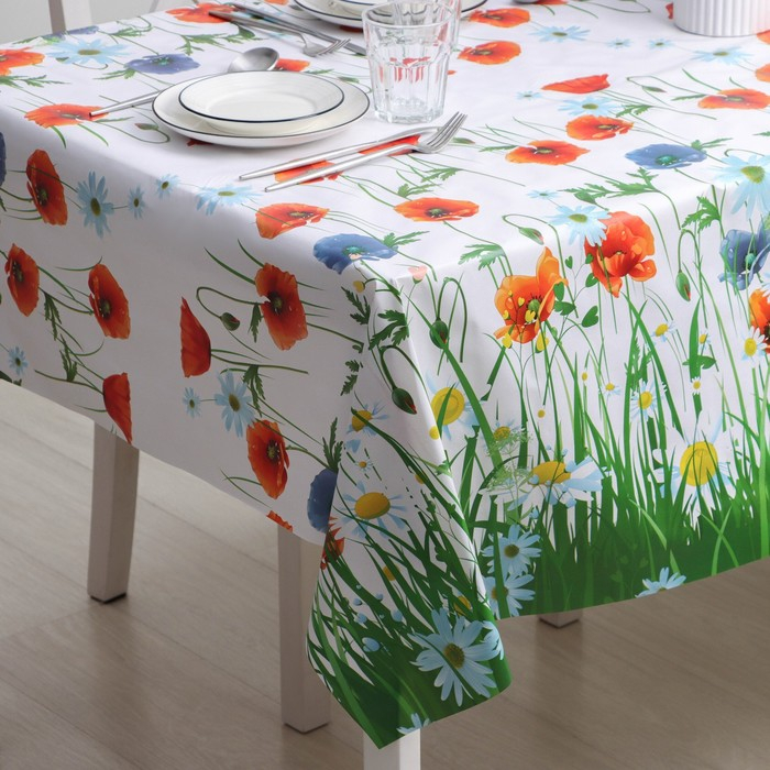 Клеёнка на стол Доляна «Цветочное поле», на нетканой основе, ширина 137 см, толщина 0,2 мм, рулон 20 м