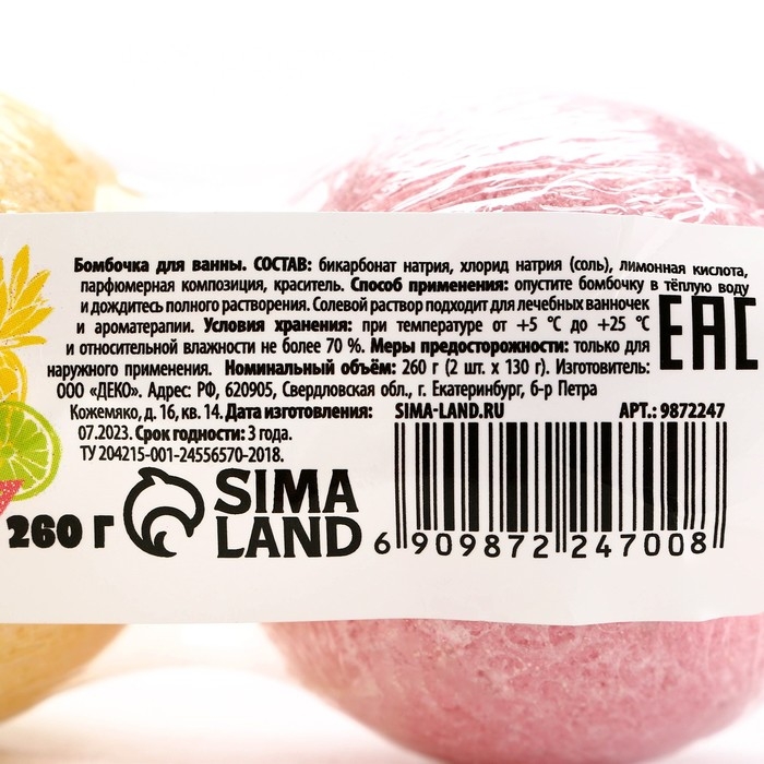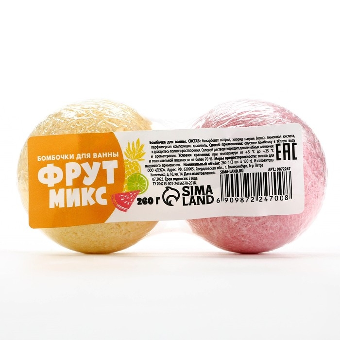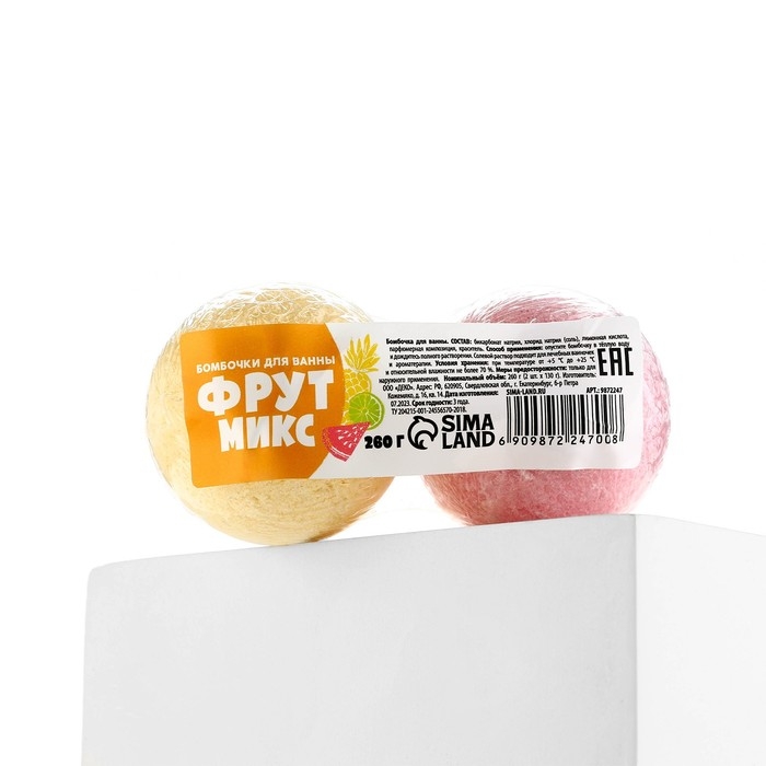 Подарочный набор косметики «Фрут», бомбочки для ванны 2 х 130 г, КЛАДОВАЯ КРАСОТЫ