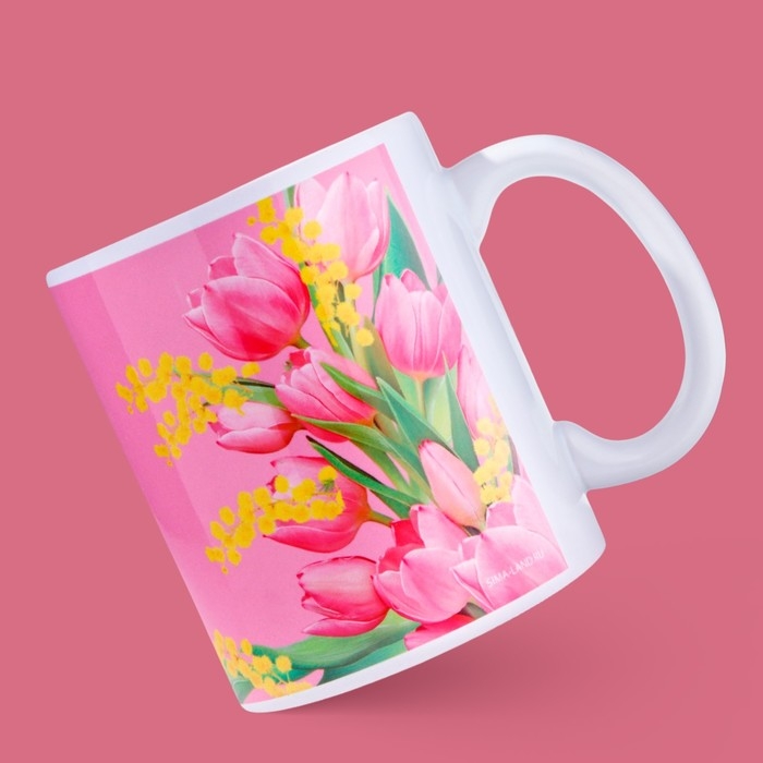 Кружка керамическая «8 марта» тюльпаны, 320 мл, цвет розовый