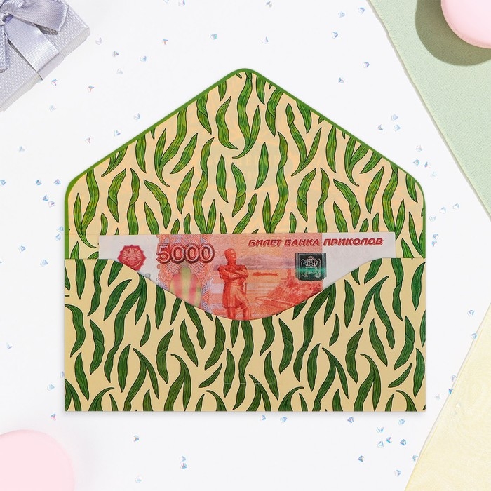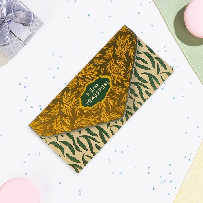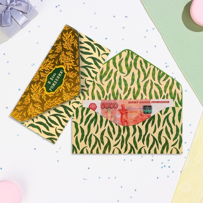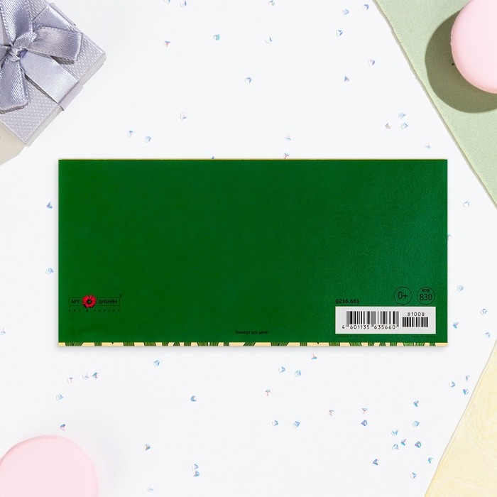 Конверт "В День Рождения!" вырубка, конгрев, тиснение, зелёный тон
