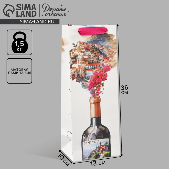 Пакет подарочный под бутылку, упаковка, Wonderful life, 36 х 13 х 10 см