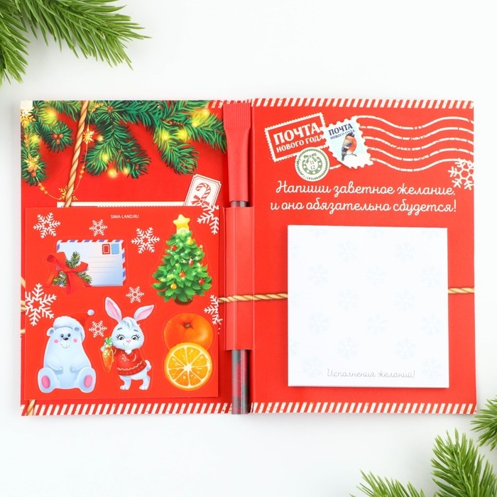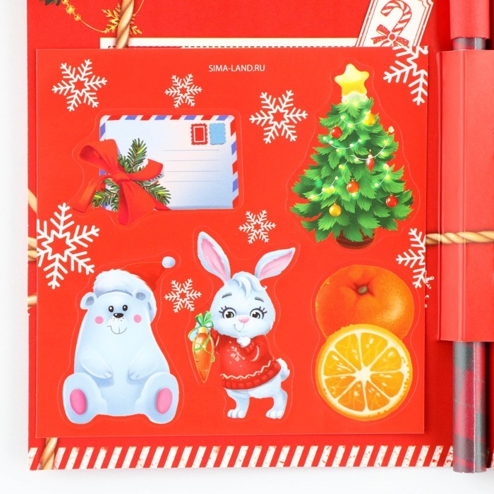 Подарочный набор новогодний «Северная почта», блок бумаги 30 л, ручка синяя паста 1.0 мм и 5 шт наклеек