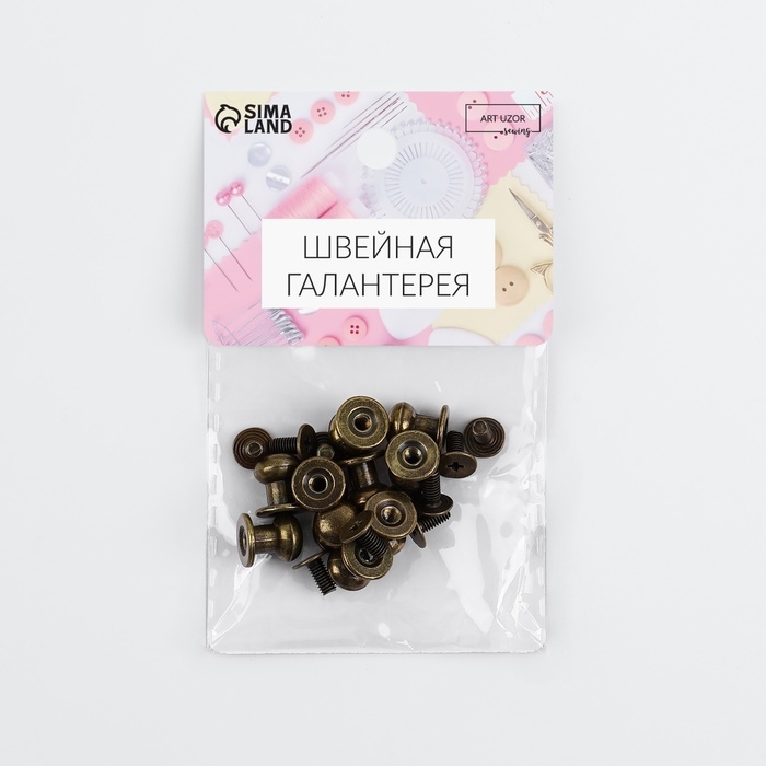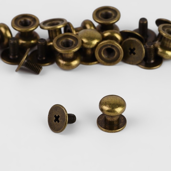 В наборе 10 штук бронзового цвета. Диаметр шляпки 7,9 мм; диаметр основания 8,5 мм; высота 8,5 мм.
