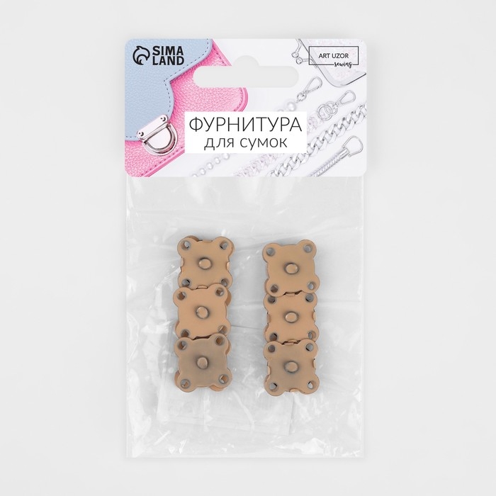 Кнопки магнитные, пришивные, d = 14 мм, 6 шт, цвет бежевый матовый