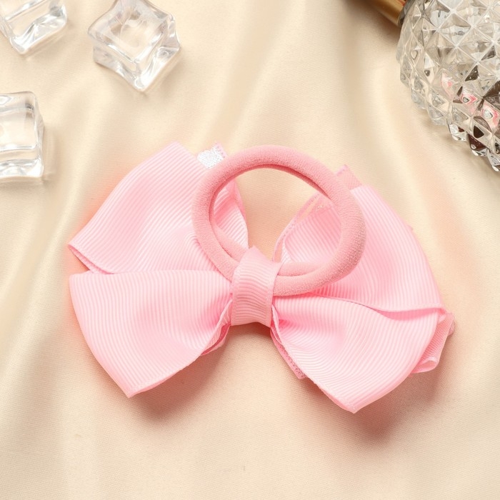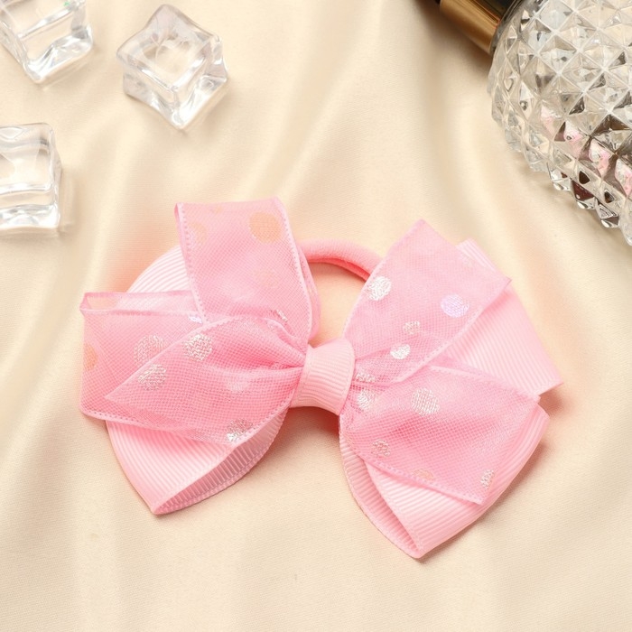 Резинка для волос бант "Школьница" двойной горох, 10 см, бело-розовый