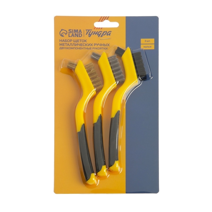 Набор щеток металлических ручных ТУНДРА, двухкомпонентные рукоятки, малые, 3 шт.