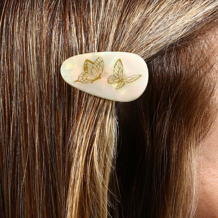 Заколка-автомат для волос "Розмари" бабочка волна, 7 см, золото