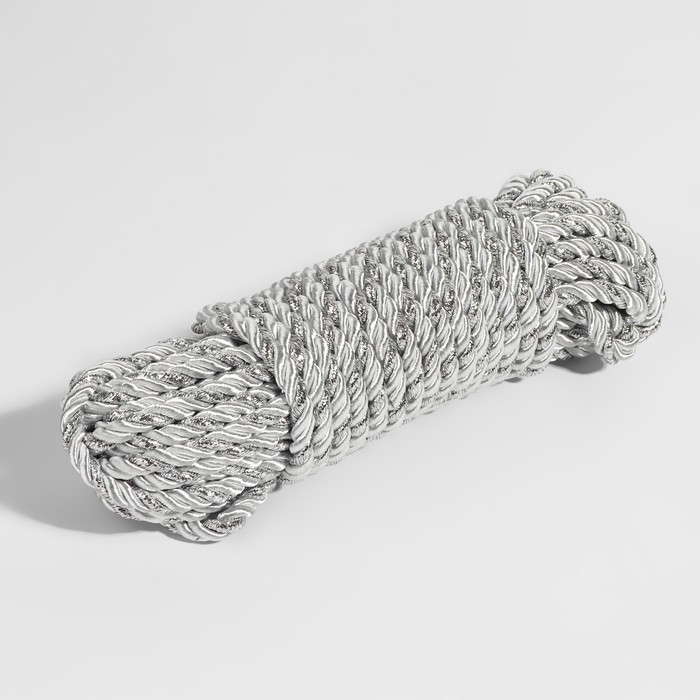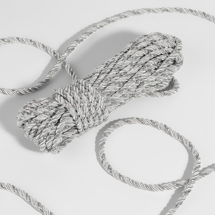 Шнур витой, d = 5 мм, 9 ± 1 м, цвет серебряный