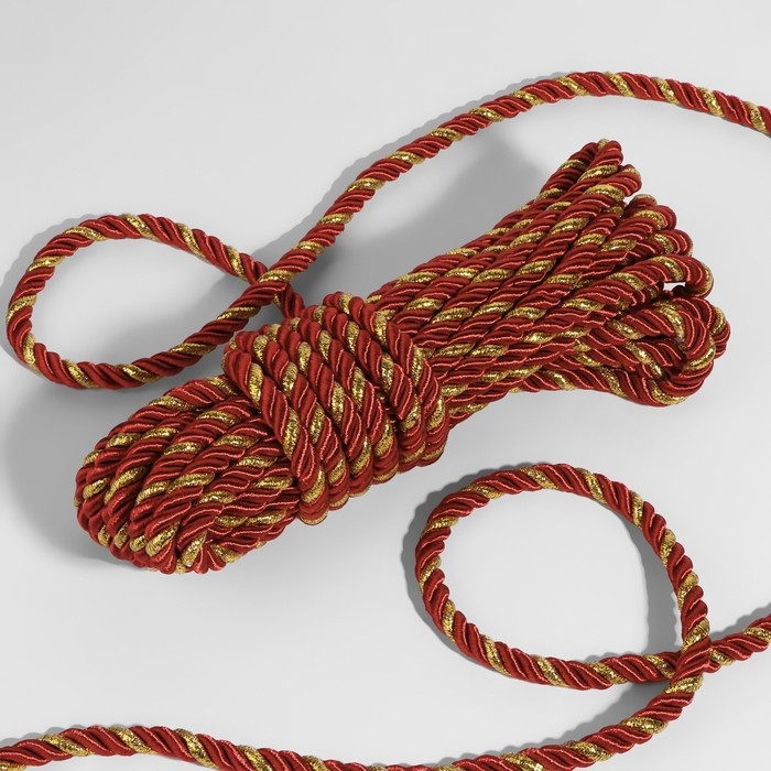 Шнур витой, d = 5 мм, 9 ± 1 м, цвет бордовый